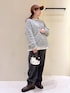 モノトーンのハローキティバッグをアクセントにしたモノトーンコーデ◎ キャラクターアイテムもモノトーンでまとめることで甘くなり過ぎず取り入れやすく◡̈ ※インナーT、アクセサリーは私物です