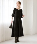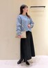 肉厚なケーブルカーディガンでレイヤードスタイル。 ワンピースのフレアシルエットが短丈のトップスと相性◎です◡̈