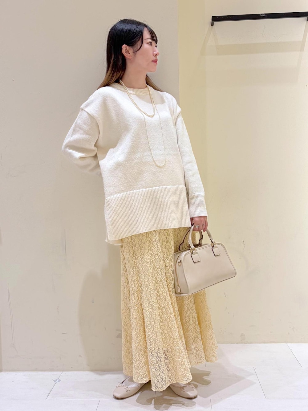 淡色でまとめて春見えを狙ったニットコーデ◎ ※アクセサリーは私物です