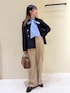 カラーブラウス×チノパンで程よくカジュアルダウンしたオフィスコーデ。 ロングシーズン使える着回しです◡̈