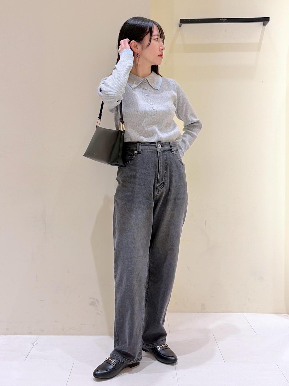 ハイウエストデニムで脚長効果を狙ったシンプルコーデ◡̈ アウター次第でロングシーズン着られる組み合わせです◎