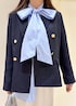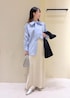 オンオフ兼用出来るジャケットを使ったフェミニンコーデ。 小物の合わせ方でカジュアルにも◎