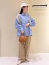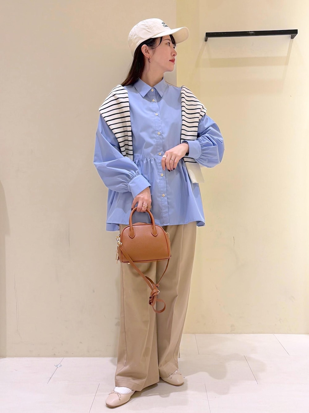 春らしい組み合わせのブラウスコーデ。 フェミニンアイテムも小物の合わせ方でカジュアルに着回せます◎