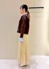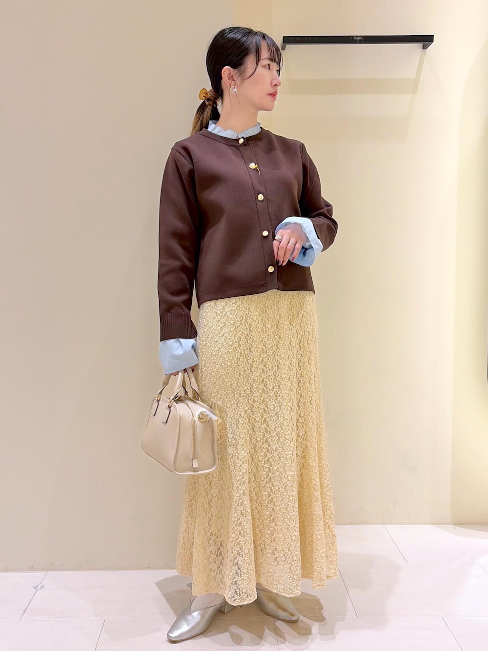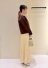 トレンドのブラウン×イエローのフェミニンコーデ。 オンオフ兼用で使える着回しです◡̈