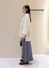 透け感のあるアイテムをレイヤードした体型カバーも叶うフェミニンコーデ。