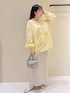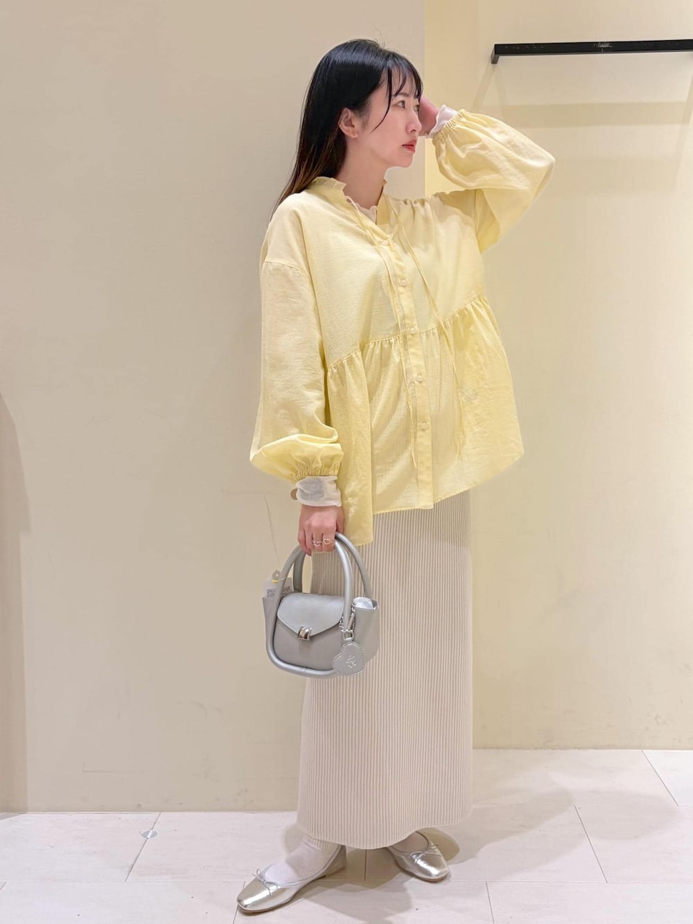 春らしいイエローカラーを主役にしたコーディネート。 小物をシルバーで統一して明るい雰囲気に◎