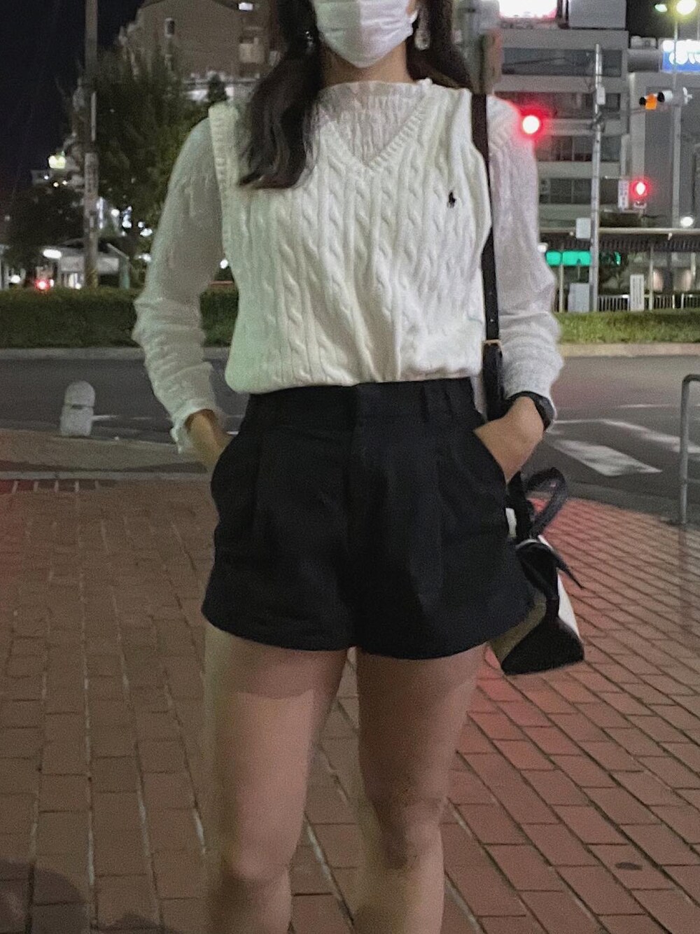 ここ最近で1番好きなコーデ お気に入りの白のニットベストは ほんまに使い回せて可愛い🤍