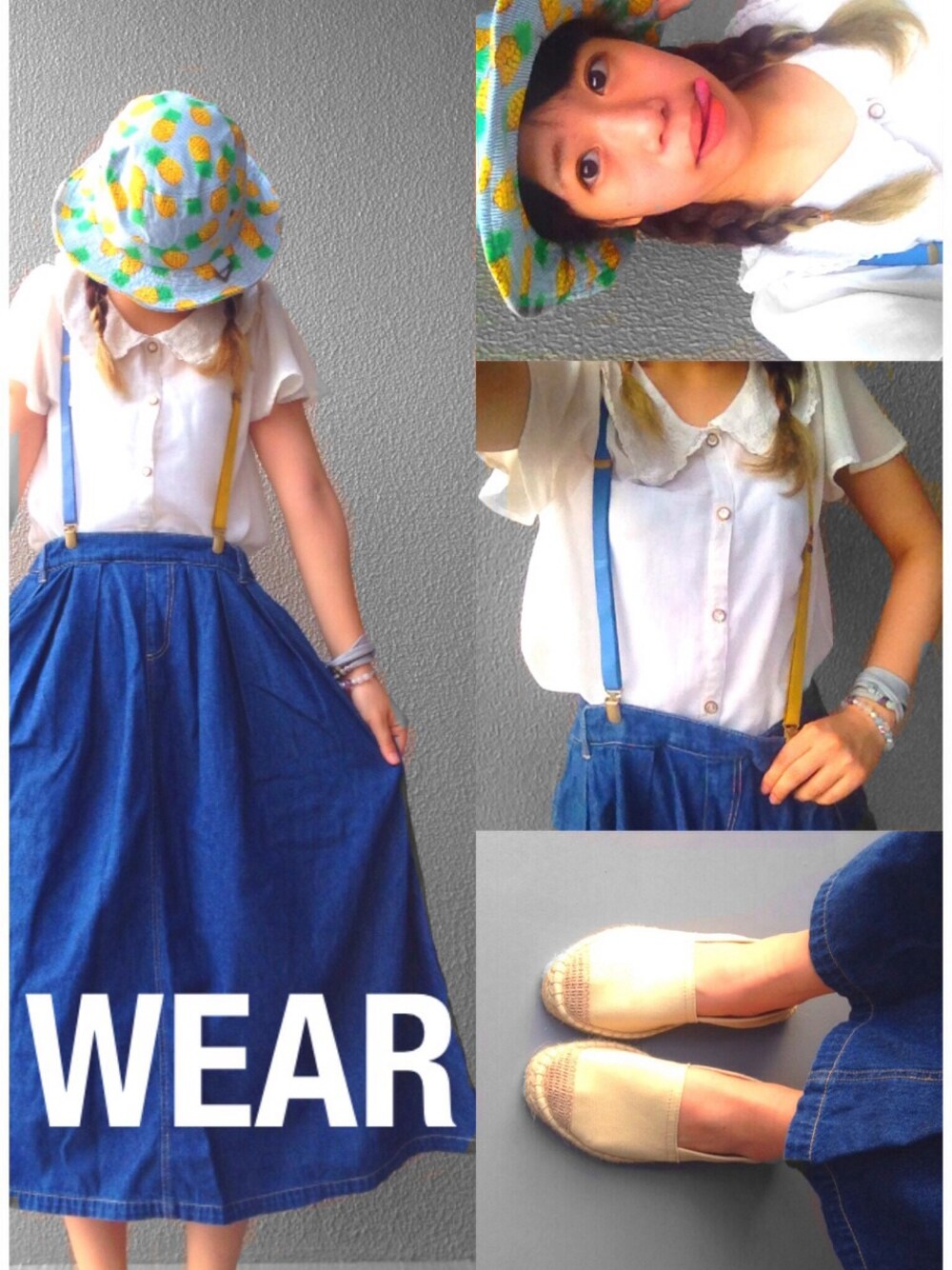 nanæのサスペンダー「HAPPY BOUNCE / クレイジーカラー 細サスペンダー」を使ったコーディネート