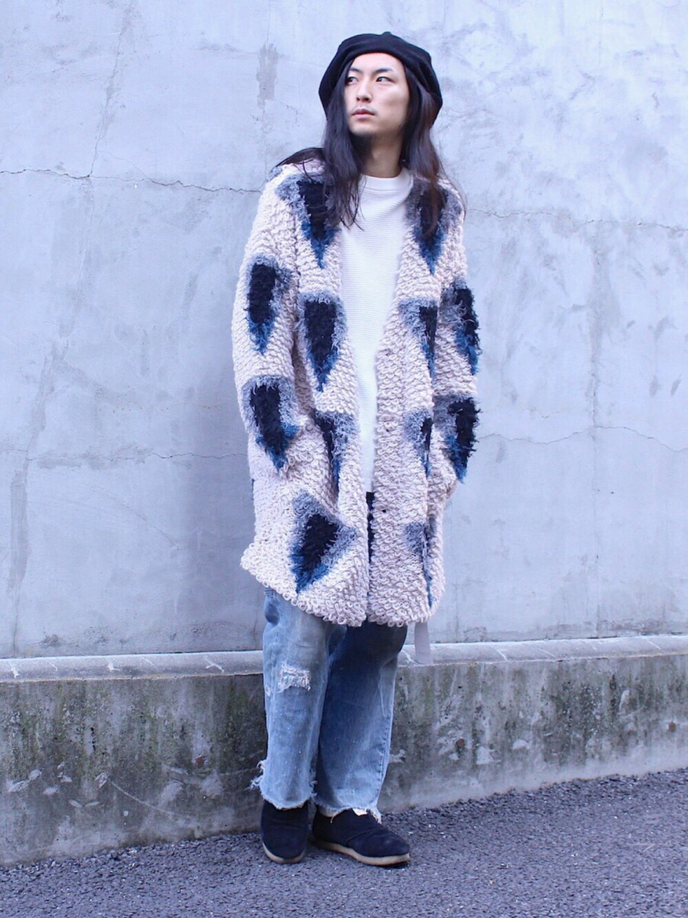 CARDIGAN. monro TOPS. crepuscule PANTS. VINTAGE BIGMAC SHOES. DOUBLE FOOT WEAR CAP. newyork hat