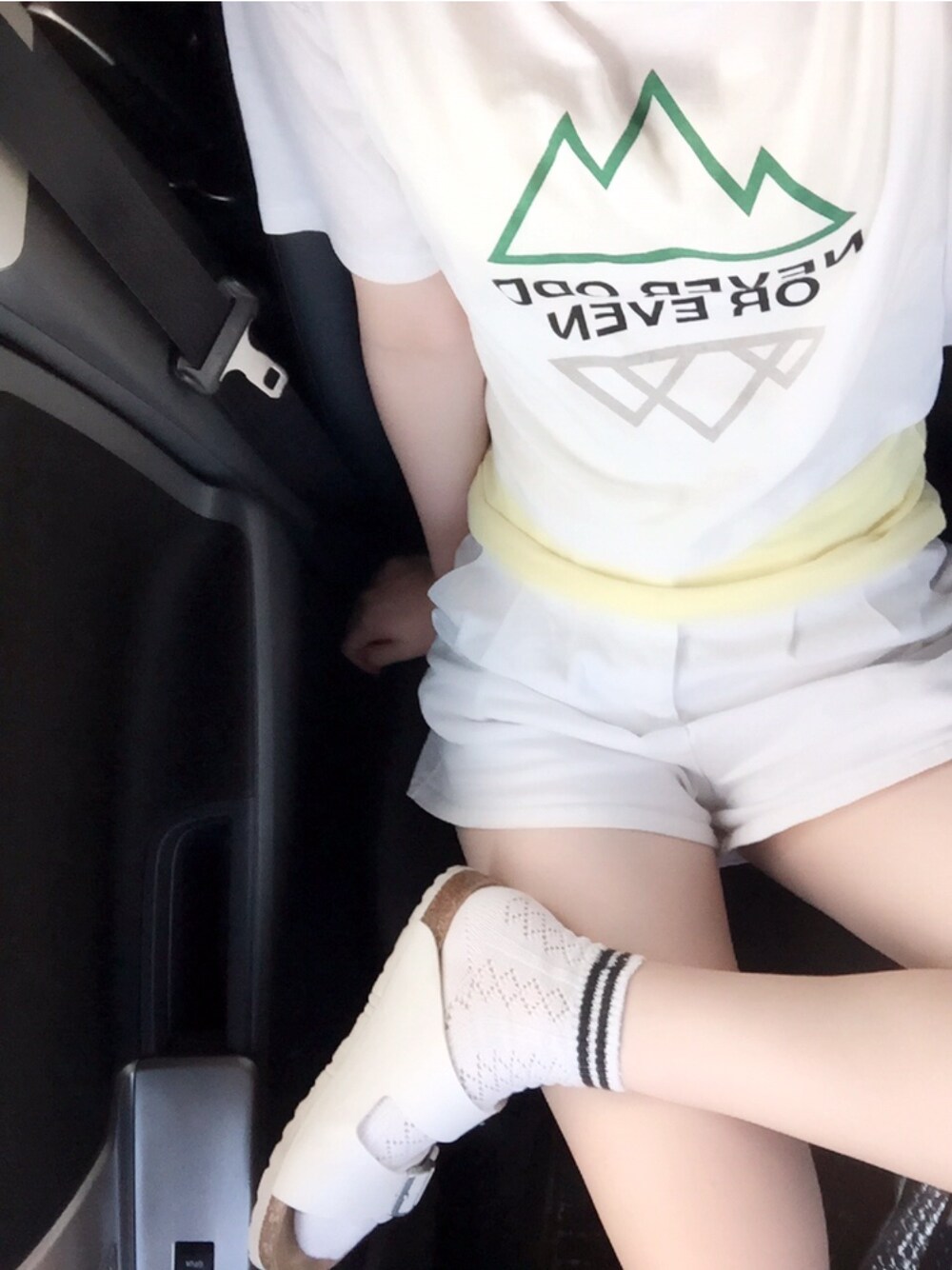 白。ラフ。 なんとも言えないお山のショート丈Tシャツ 袖が広がっててお気に入り(^O^)