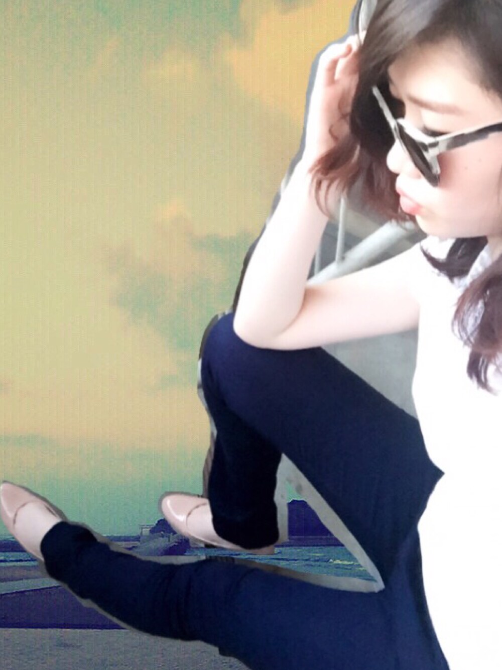 いつの間にかGUづくしになってた💘 サングラスを集めるのが好きでこれは結果お気に入りです😎 ハイネックのトップスは黒も持ってる〜〜 可愛くて白も黒も買った!笑 合成の適当さはスルーしてください✋www