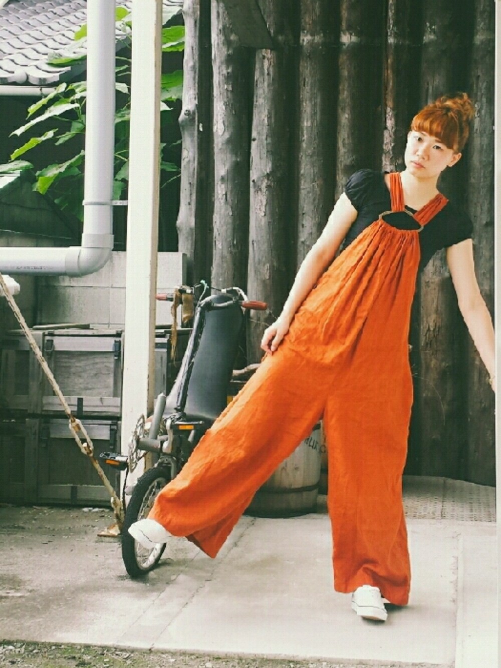 YUKKINのオールインワン・サロペットを使ったコーディネート