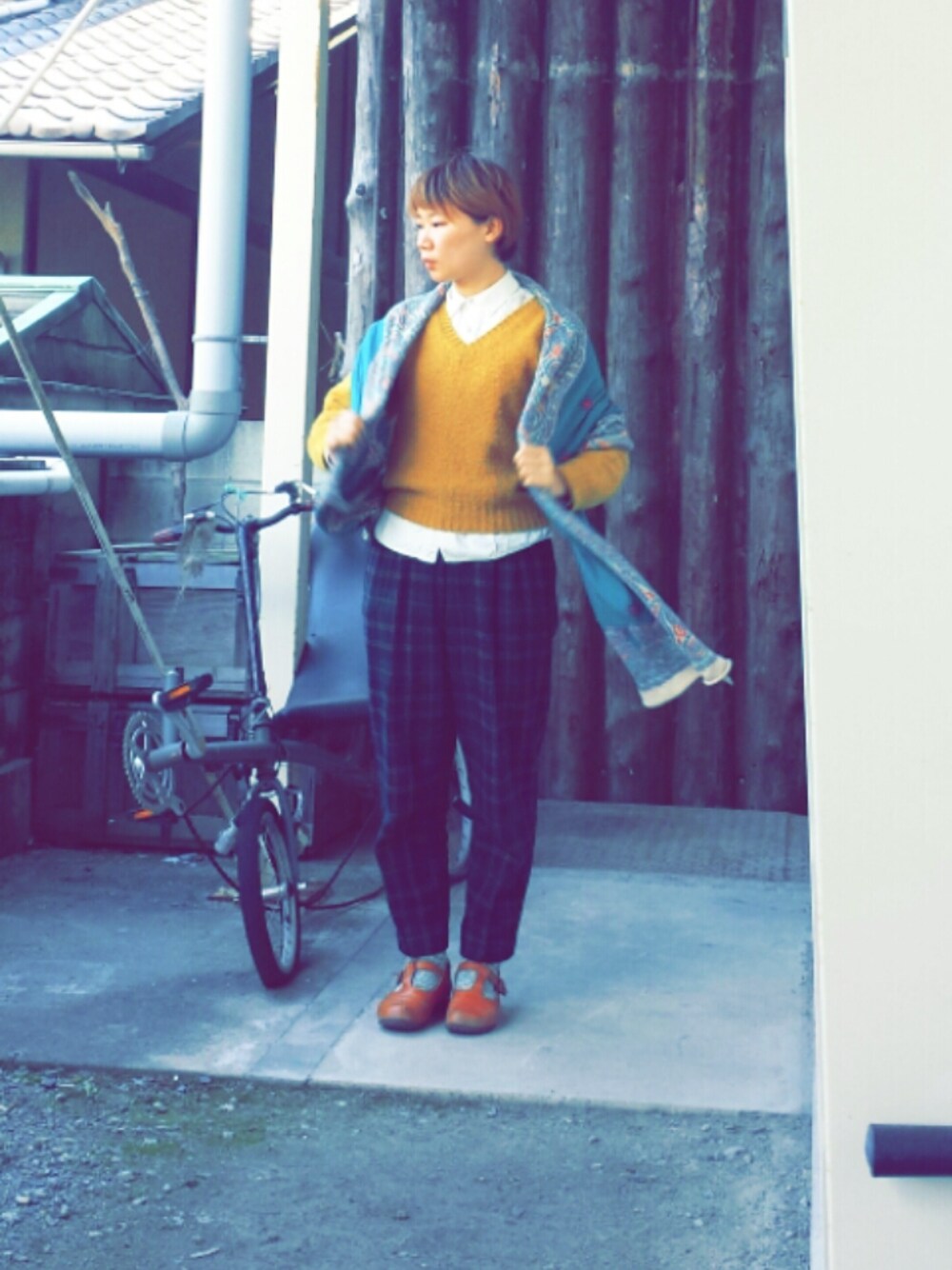 ニットの中に着たシャツはKAPITALのカトマンズシャツです。リペアをしながらガシガシ着てます。 もう一枚ほしいなあ…。