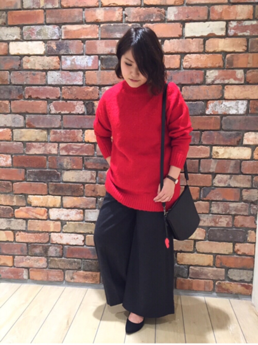 メンズのニットを着てみました❤️ ガウチョに合わせてゆるゆるコーデ😘💕 赤いニットが可愛いですよー💖 BERACAMYのバックは プレゼントにも🎁💖
