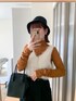 テラコッタがアクセントのカジュアルコーデ🐈🧶 23AWはミニ丈がトレンドのようなので、 今回はショートパンツと合わせてみました。 ブラックを着ると重くなりがちなので、 少し肌見せをするのが個人的には バランスのいいコーデになります!