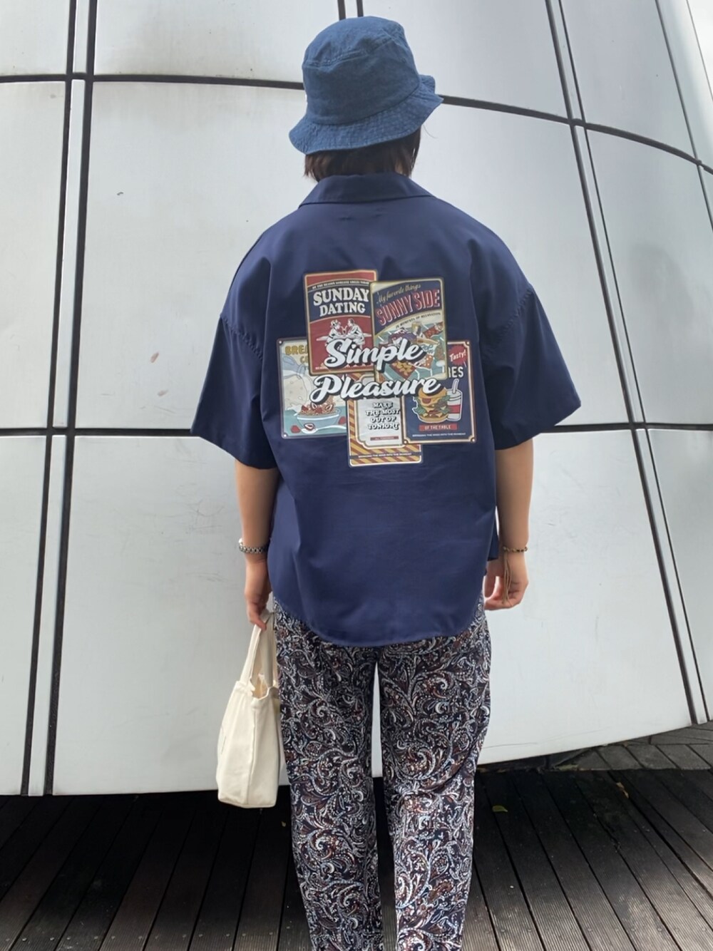 前回の投稿の後ろ姿ver. 後ろのプリントが可愛いんです。 古着屋巡りした日🚶♂️~…