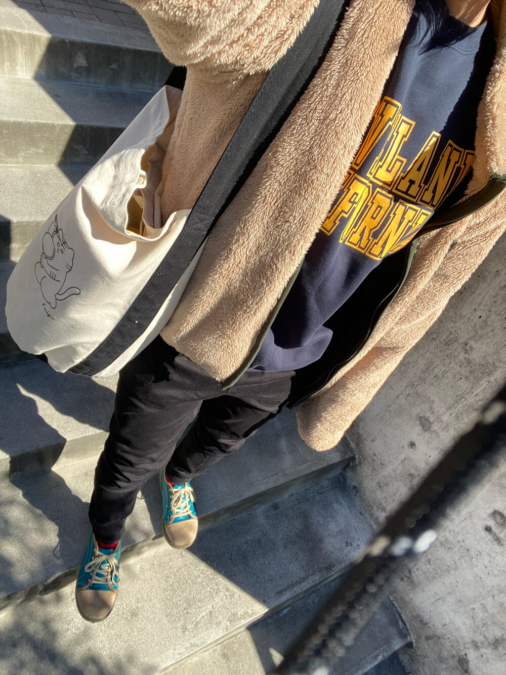 急だったからラフな格好で街中行った😅 championが好きなんです。 ベージュ多め🧥🥾
