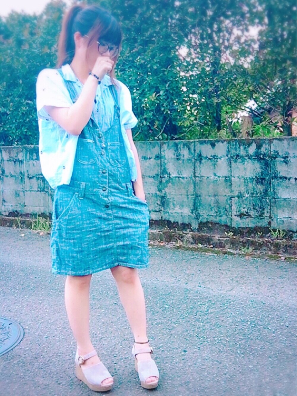 そらのワンピース/ドレス「Leeデニムサロペットスカート」を使ったコーディネート