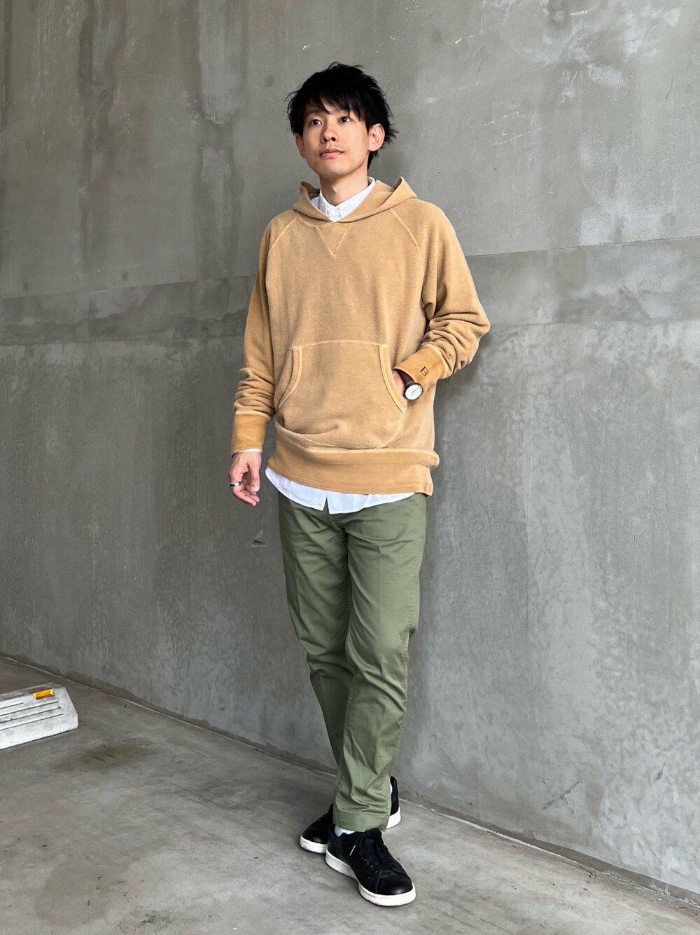 本日2回目の投稿失礼します🙇♂️ また前回の投稿にいいねやお気に入り、フォロー等ありがとうございます😊 休日散歩近所スタイル🚶♂️ 【ポイント】 ●🟢🟤ベース。レギュラーカラーシャツ✖️パーカーでレイヤードをした立体感のあるアースカラーのゆるコーデ。 ●下に⚪️シャツをレイヤードする事でアースカラーの野暮ったさを減らして春夏っぽい明るさと抜け感を。 ●ボトムスはカーキのチノパン。スニーカー👟の底部分、襟、裾を⚪️で統一して軽さを。靴自体は⚫️にしてボヤけてる色味をしめました。 インスタには別カット等も掲載予定です。 宜しければご覧ください🙇♂️ IG→@yukio_coffee