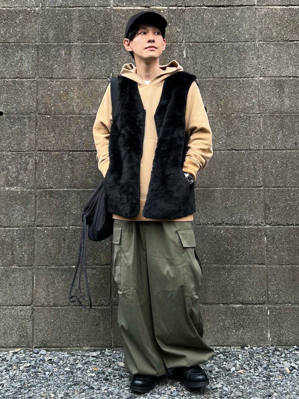 ご覧いただき、ありがとうございます😊 【ポイント】 ●ヴィンテージ加工のサンド色のパーカーに、confirmの黒のファーベストをレイヤード、カーキのワイドカーゴを合わせた秋コーデ。 ●ファーベストは本日1,000円オフクーポン出てます!📣 前回の投稿にいいねやお気に入り、フォロー等ありがとうございます😊 インスタには別カット等も掲載予定です。 IG→@yukio_coffee #pr