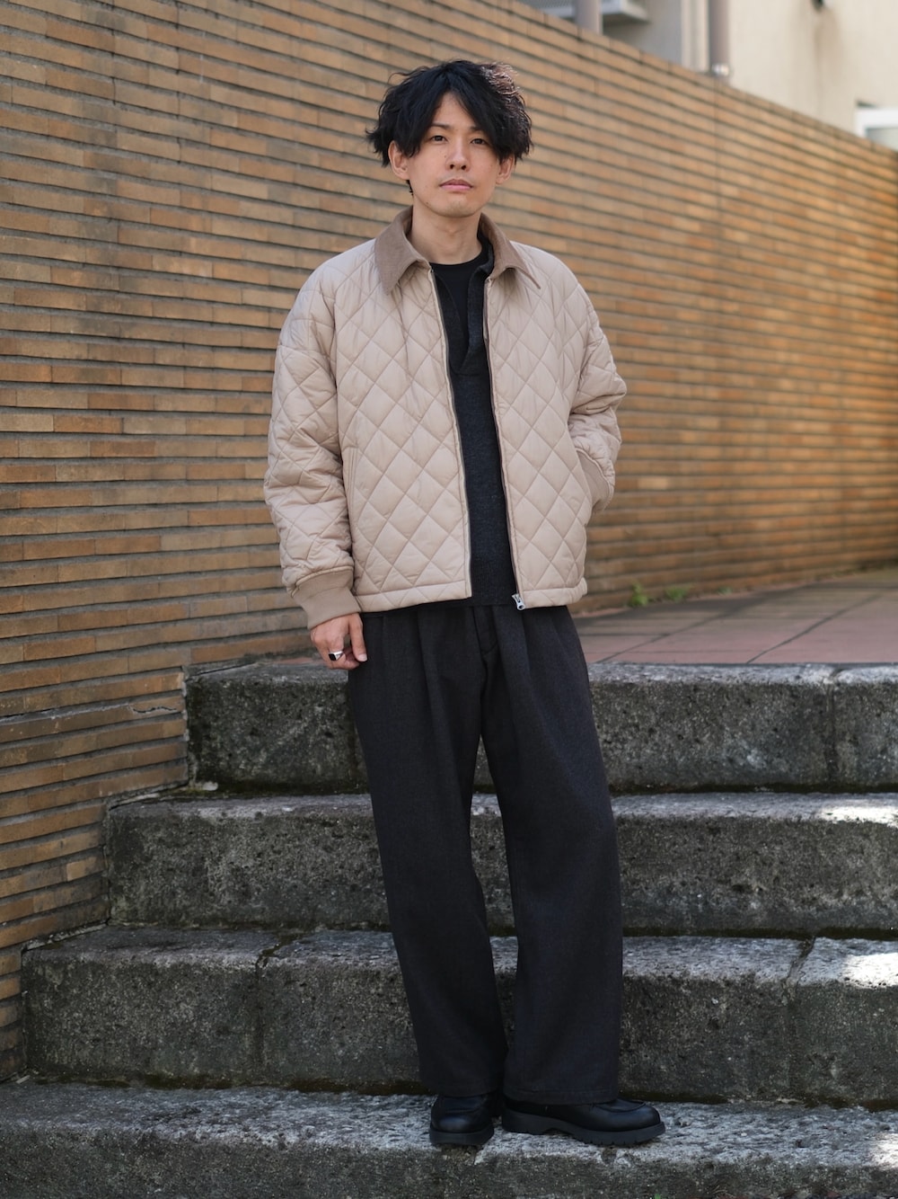 ご覧いただき、ありがとうございます😊 【ポイント】 ●スキッパーニットポロにドレープ感のあるスラックス、モノトーンにアウターのベージュで差し色をしたコーデ(🟤⚪️⚫️) 前回の投稿にいいねやお気に入り、フォロー等ありがとうございます😊 IG→@yukio_coffee