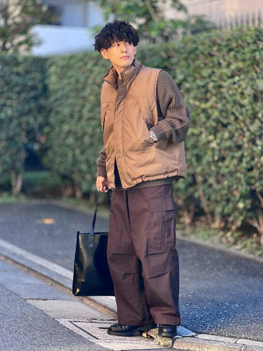 ゆっきーのダウンベスト「【TAION/タイオン】GLOSTER別注 モンスターベスト MILITALY vest」を使ったコーディネート