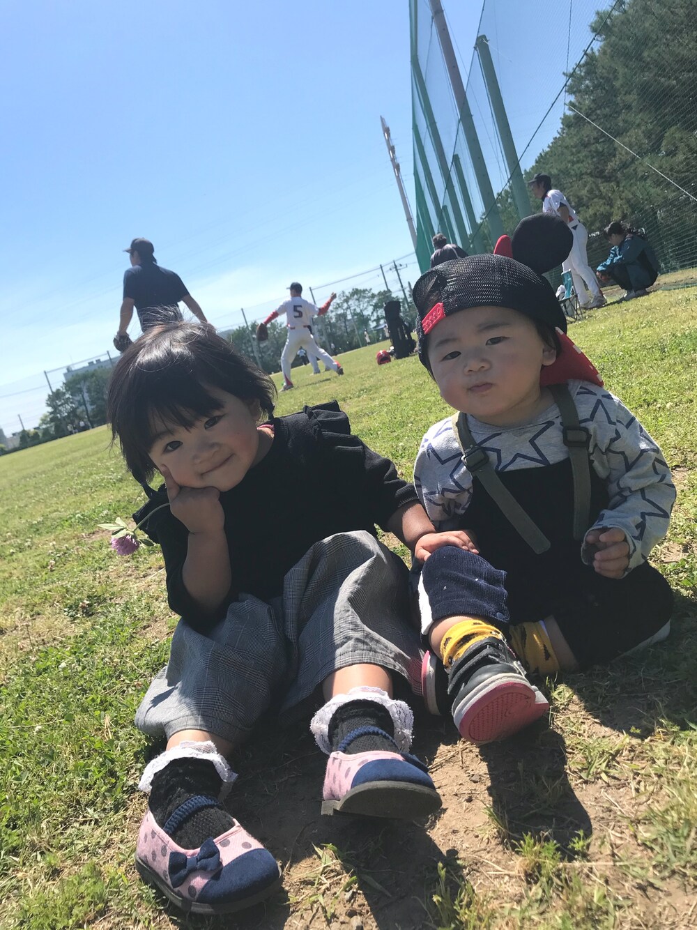 ソフトボール見に行った〜💓 天気は良かったけど少し寒かったから長袖にした😋だけど走り回って汗だく💦💦 お姉ちゃんのミニーちゃんのキャップは弟が気に入って常に被ってた😂 外で遊ぶっていいねぇ♡ お姉ちゃんの手が弟の膝上にあるのはなんだかホッコリする😍