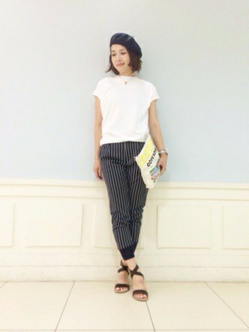 erinaのその他パンツ「ストライプ裾RIBパンツ」を使ったコーディネート