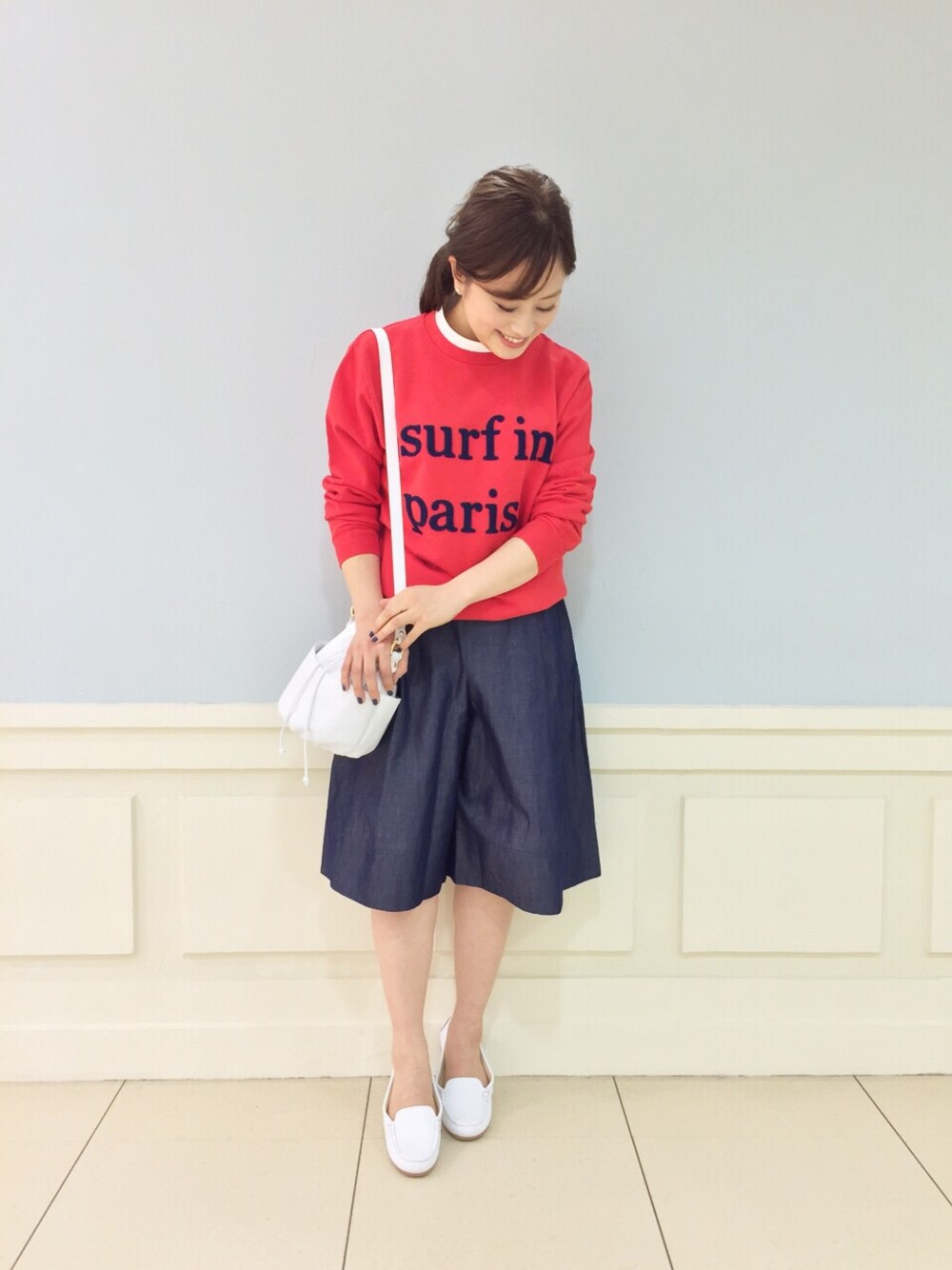 小物のカラーを揃えれば、綺麗なカラーのコーディネートも簡単です♬