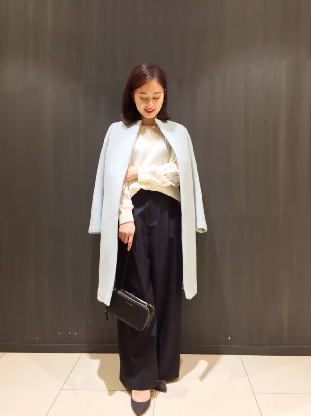 ニットはレース袖で人気です♫ 明るめカラーのコートは春意識のコーディネートにも合わせやすいですね!