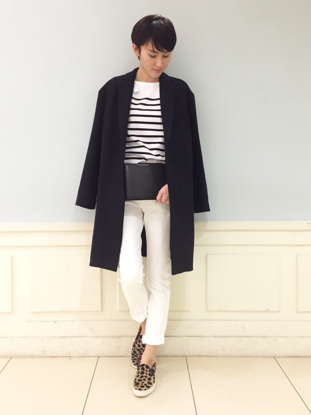 まだまだ大人気のmohiスリッポン♪ topsをボーダーやストライプ、ドットなどにして、柄×柄コーデを取り入れてみてください♡ ボーダー×レオパードは比較的取り入れやすいですよー^ ^