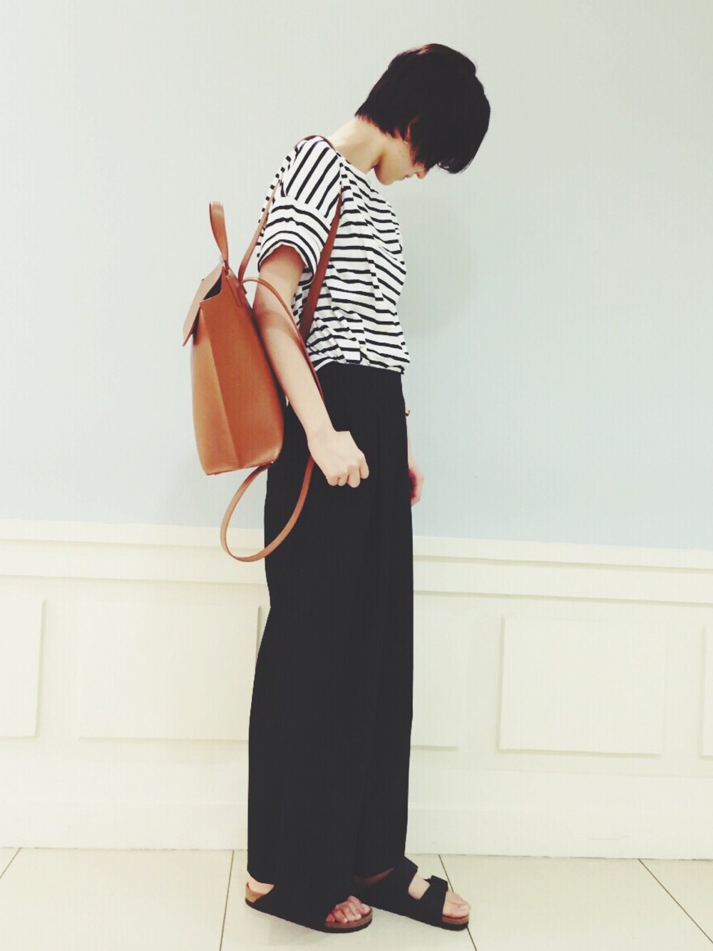 chinamiのTシャツ/カットソー「ボーダーワイドプルオーバー」を使ったコーディネート