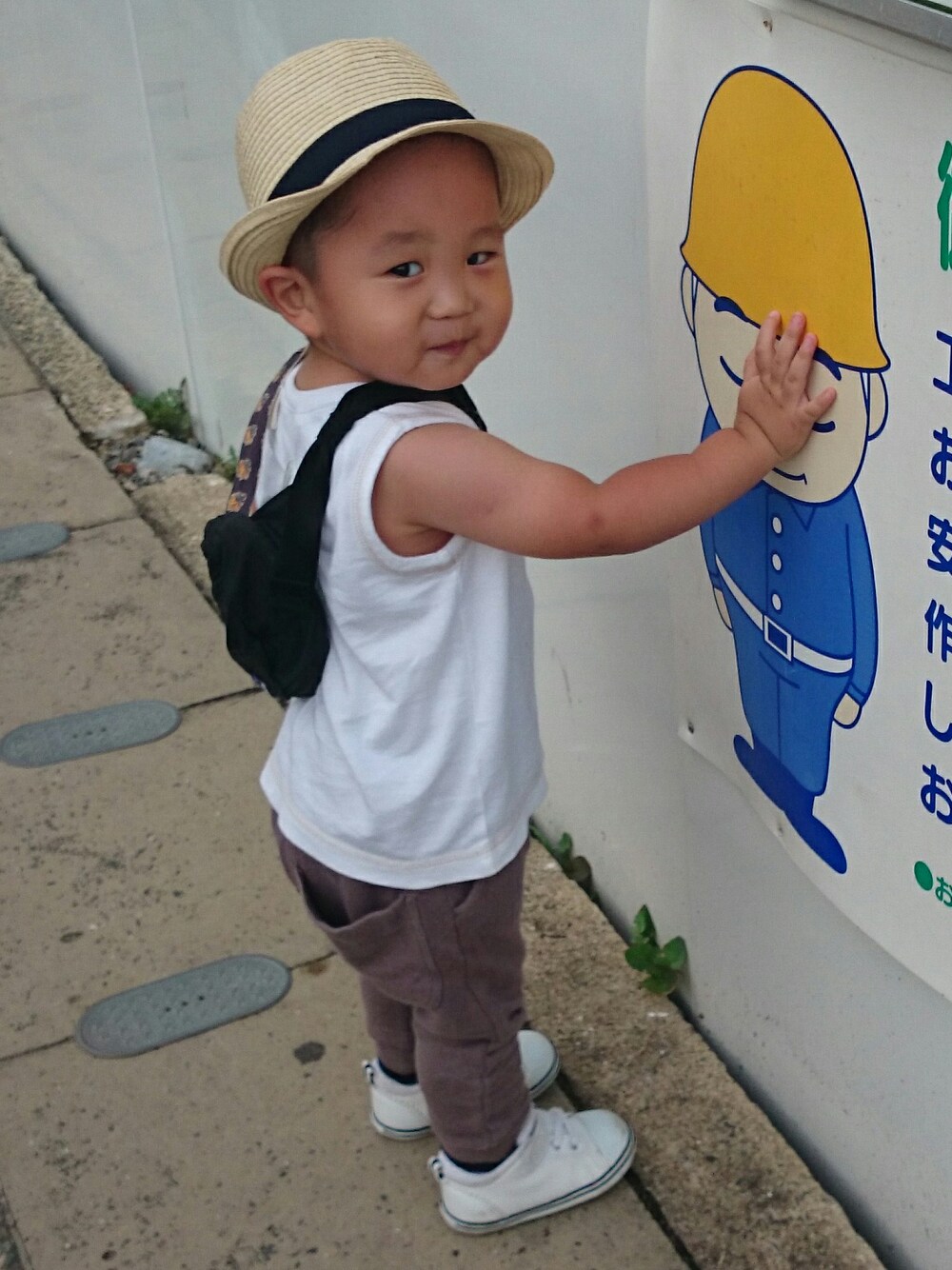 タンクトップ② 短パン履かせたいけど、公園、夕方だったので長いほうに✨💕 この工事中の看板の人と同じ背丈ぐらいで、いつもこんにちは~してる😁👋