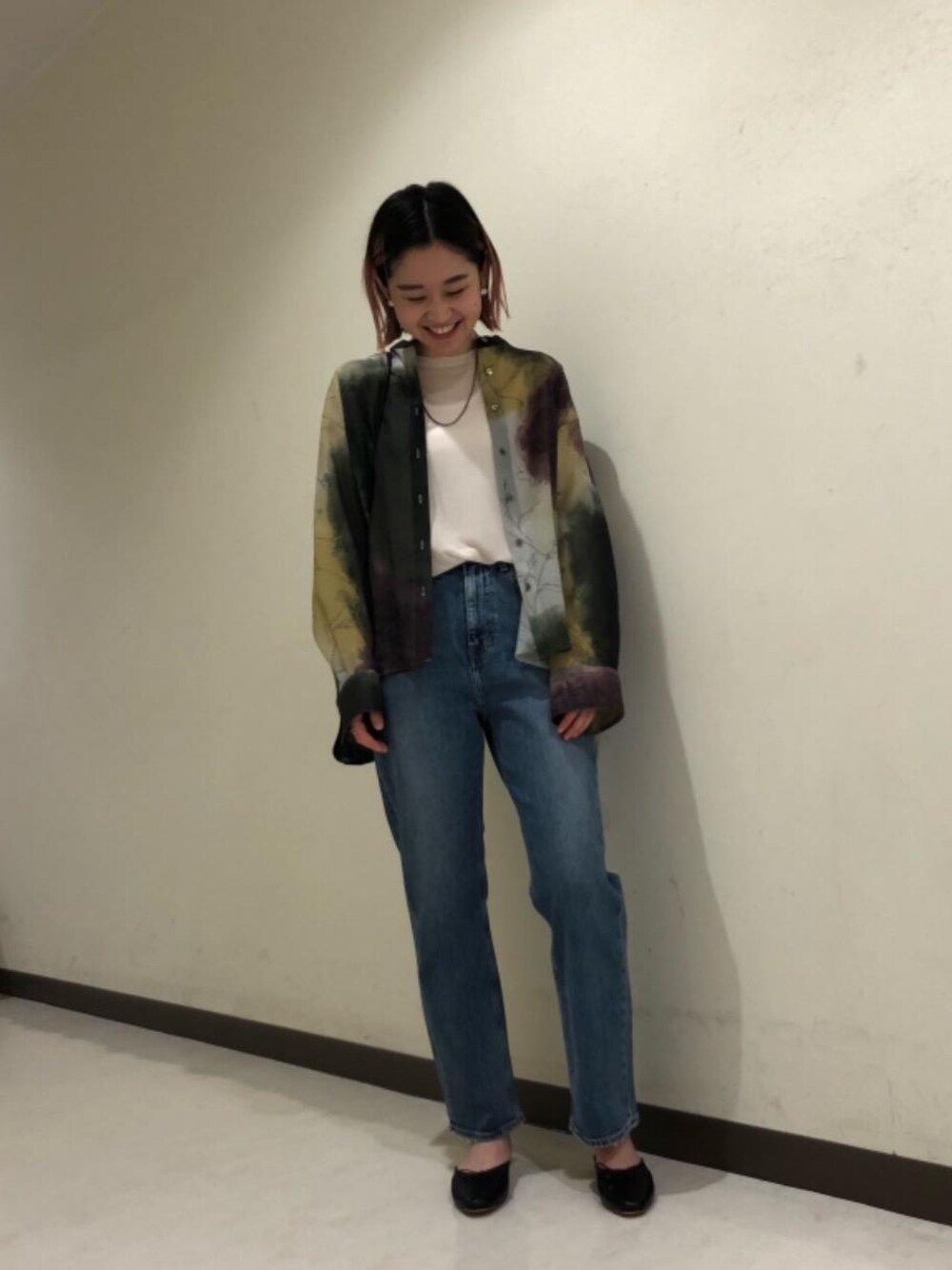 今年気分のデニムスタイルです。 デニムはハイウエストで足が長く見えます! お洒落が出るシャツを合わせデニムでも大人っぽく見えるようにスタイリングしました