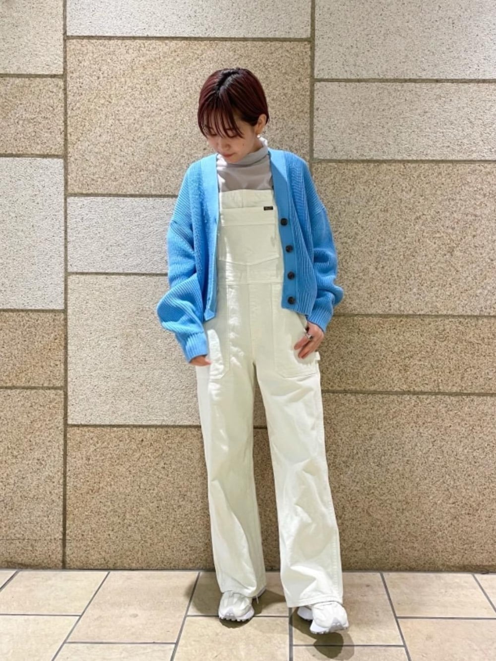 ・身長:160㎝ ・普段サイズ:トップス S/スカートS/パンツS.M/シューズ23.5cm 【サイズ感】 カーディガン:ゆったり トップス:適度にゆとりあり シューズ:少し細身 【ポイント】 足元は国内EXCLUSIVEモデルの<New Balance>WS327でスポーティな印象に。インナーからオーバーオール、スニーカーまで同系色にまとめてカジュアル過ぎずに大人でも着やすいスタイルにしました。 鮮やかなブルーのカーディガンもコーディネートのポイントです!