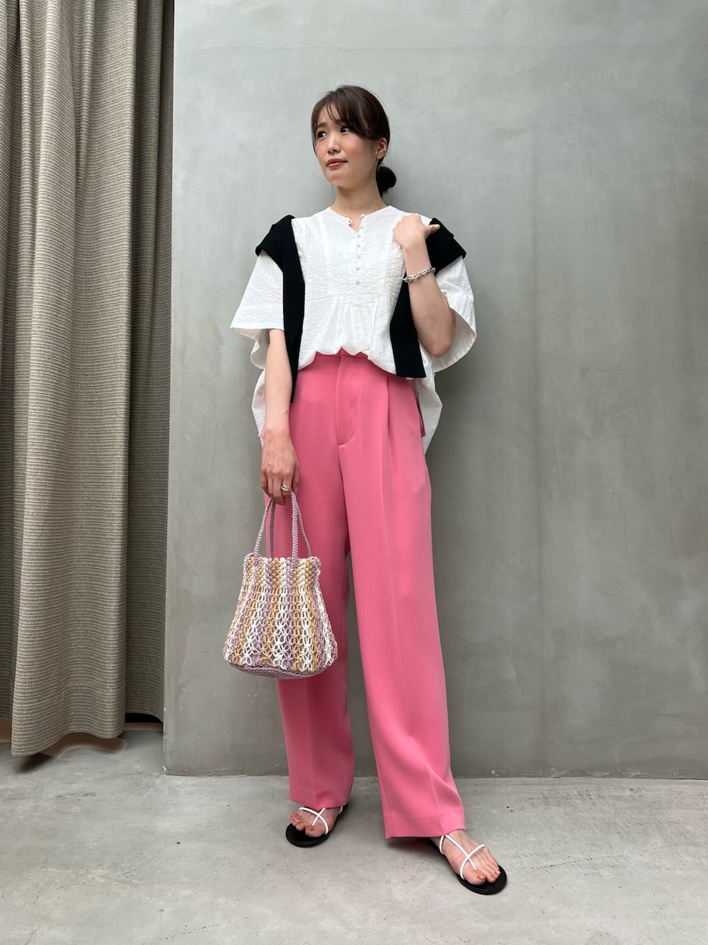 STAFF OF THE YEAR 2次審査出場中 下記リンクから動画視聴・いいねお願い致します。 https://soty.staff-start.com/2022/staffs/581 【サイズ感】 トップス:ゆったりしたシルエット ボトムス:標準的 シューズ: 横幅がある為1サイズアップ 【着心地・素材感】 トップス: サッカー生地特有の表面感とアイレットのような透け感 ボトムス: さらりとした質感と適度な張りの二重織り生地(ダブルクロス)を使用 【コーディネートポイント】 カラーボトムス主役のコーディネート。トップスアウトだとバランスがいまいちな方でも、ブラウジングで腰回りをスッキリさせると着やすいブラウスです。