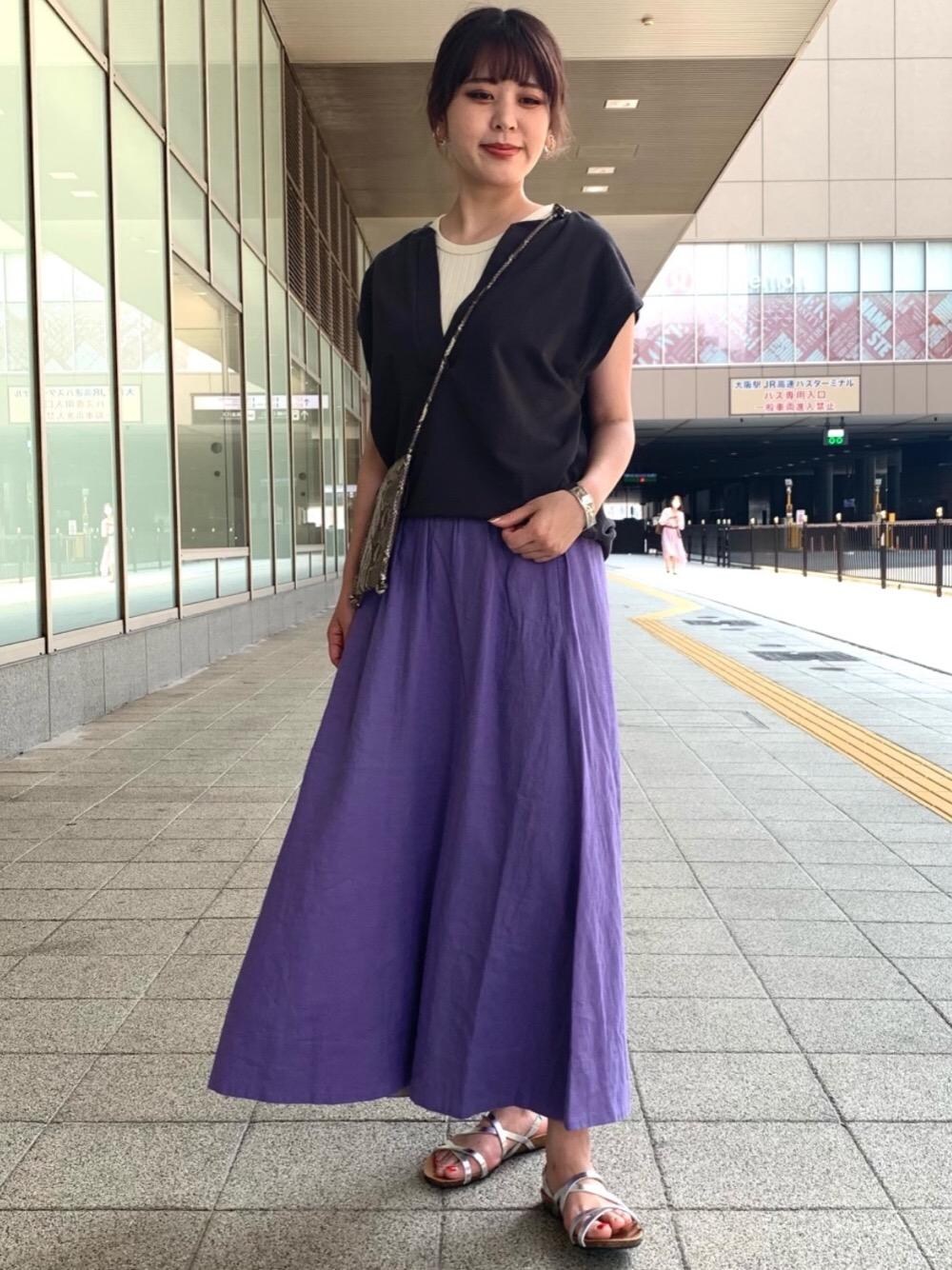 【身長162㎝】 辛めカラー合わせもスカートのフワッとしたシルエットでキツくならず、普段のお出かけスタイルにもおすすめです。