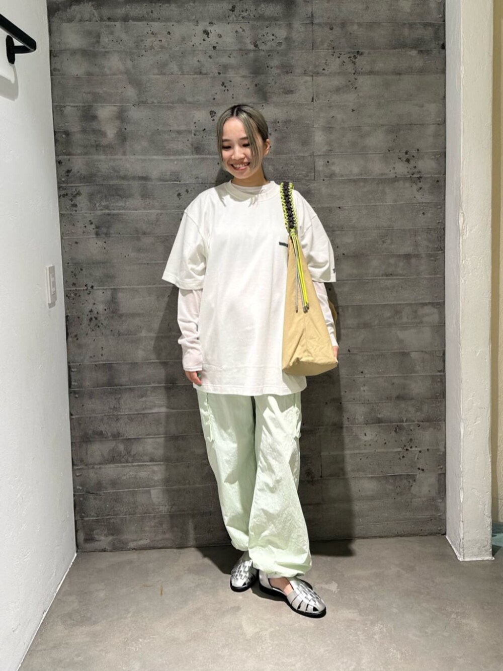 【普段サイズ】 トップス S パンツ S シューズ 23cm 【サイズ感】 インナー ややコンパクト/伸び感あり Tシャツ ゆったり パンツ ゆったり/ウエストゴム/裾にドローコードあり シューズ やや小さめ(ハーフサイズUPでも良さそう) 【コーディネートポイント】 今回は春らしいカラーのコーディネートを組みました!半袖のTシャツも薄手のロンTを重ねることで今からでも着ていただけます!
