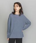 ブルーのワントーンコーディネートに、小物はシルバーと黒でまとめました。暖かくなり、これまでインナーや一枚着として着ていたボーダーTシャツをアクセントとしてラフに肩に掛け、着回してみました。