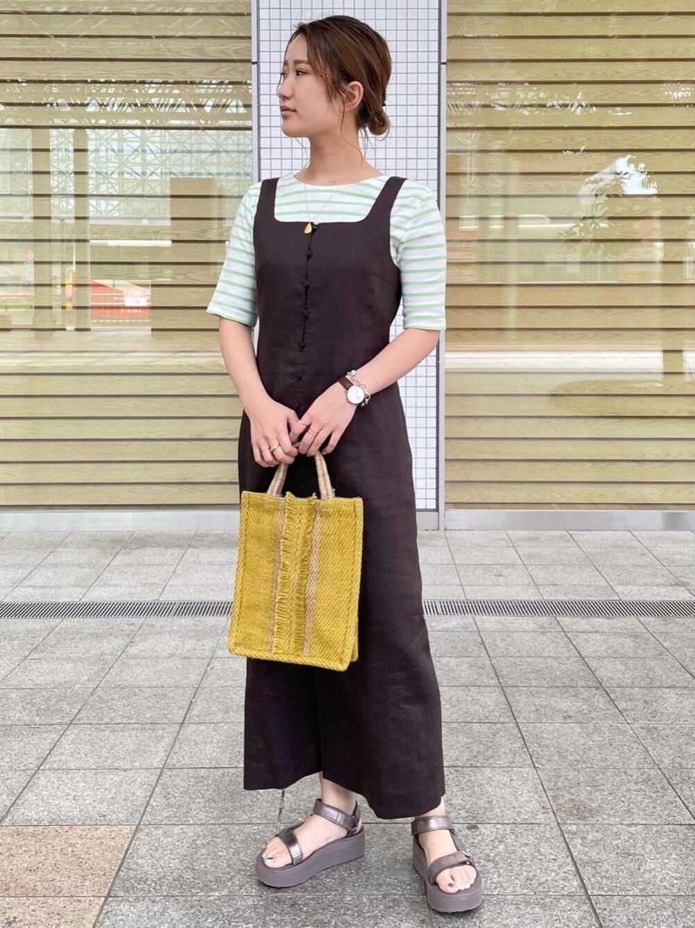 ●身長:161cm ●普段サイズ:ボトムスM/シューズ24.5cm or 25cm 【サイズ感】 トップス:標準 ワンピース:ややタイトで程よく体にフィットする シューズ:やや大きめ 【素材感】 ワンピース:麻特有の乾いた生地 【コーディネートポイント】 ワンピースとバッグは麻のアイテムを着用しているので、コットン生地の柔らかいトップスと足元はメタリックなサンダルを着用し、素材の違いでメリハリをつけました。インナーをノースリーブに変えたり、シューズをスニーカーに変えたり、着回しを楽しんでいただけるワンピースはオススメの一着です。