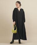 ●身長:161cm ●普段サイズ:ボトムスM/シューズ24.5cm or 25cm 【サイズ感】 ワンピース:ゆったり、丈標準 シューズ:標準 【コーディネートポイント】 スカーフとトートバッグのグリーンを差し色にしたコーディネートです。やや透け感のある軽やかなワンピースにはこれまで合わせてきたサンダルからブーツやレザー調のシューズにシフトするだけで秋らしい装いに。袖口にはゴムが施されているので肘ほどまで上げていただくとよりボリューミーでフェミニンになります。