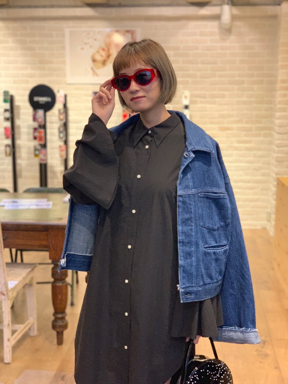 袖のボリューム感が可愛い〜 差し色で入れたサングラスの赤が いい感じにきまってる〜