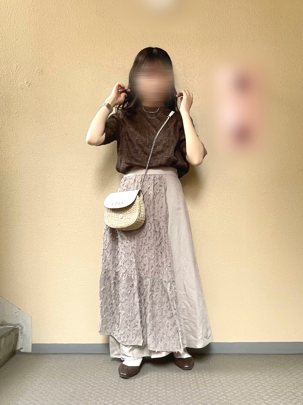 t o m o 🍓のスカート「ジャガードレイヤーティアードスカート/943391」を使ったコーディネート