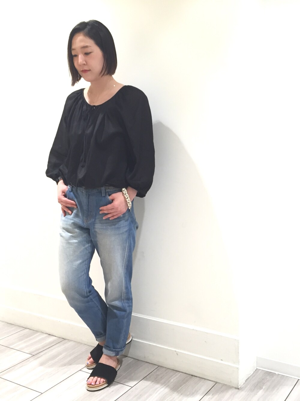 久しぶりのブラウス。 ふんわりシルエットをあえてデニムでカジュアルに◎