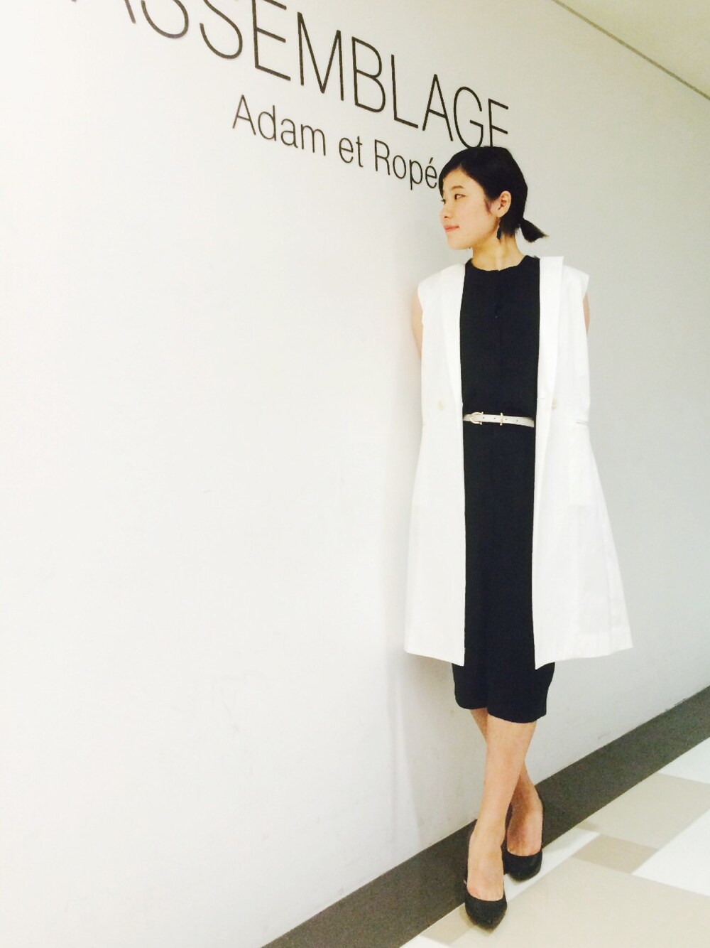 ワントーンのブラウス×パンツ×ジャケットの合わせでかっこよく。 ブラウスを前だけインすると今年らしい着こなしになりますよ☺︎