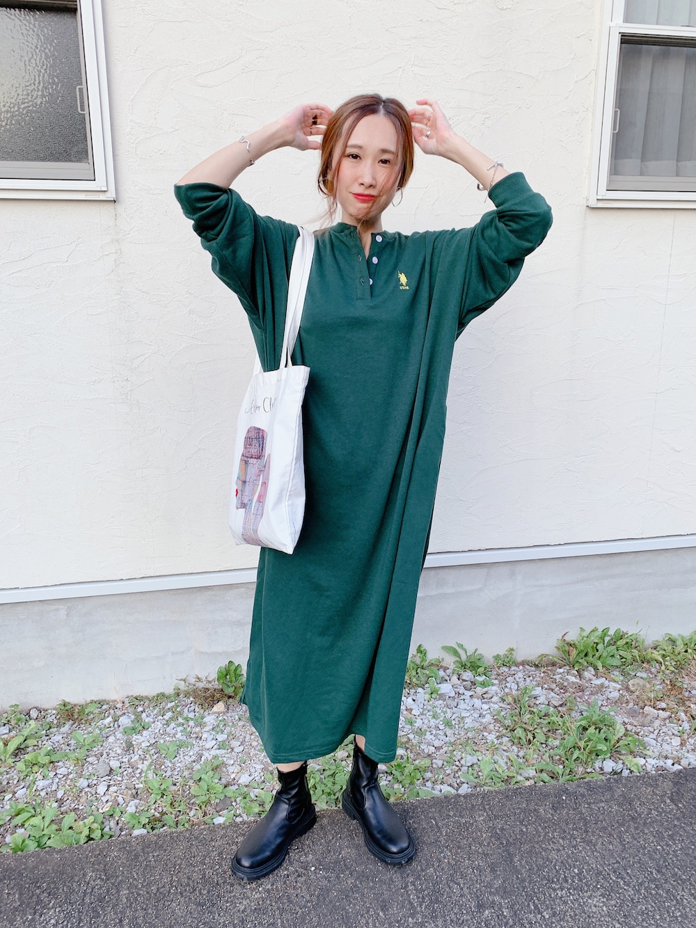 あみぃのワンピース「U.S. POLO ASSN. /ユーエスポロアッスン 別注ワンポイント刺繍ロゴ オーバーサイズラガーシャツワンピース」を使ったコーディネート