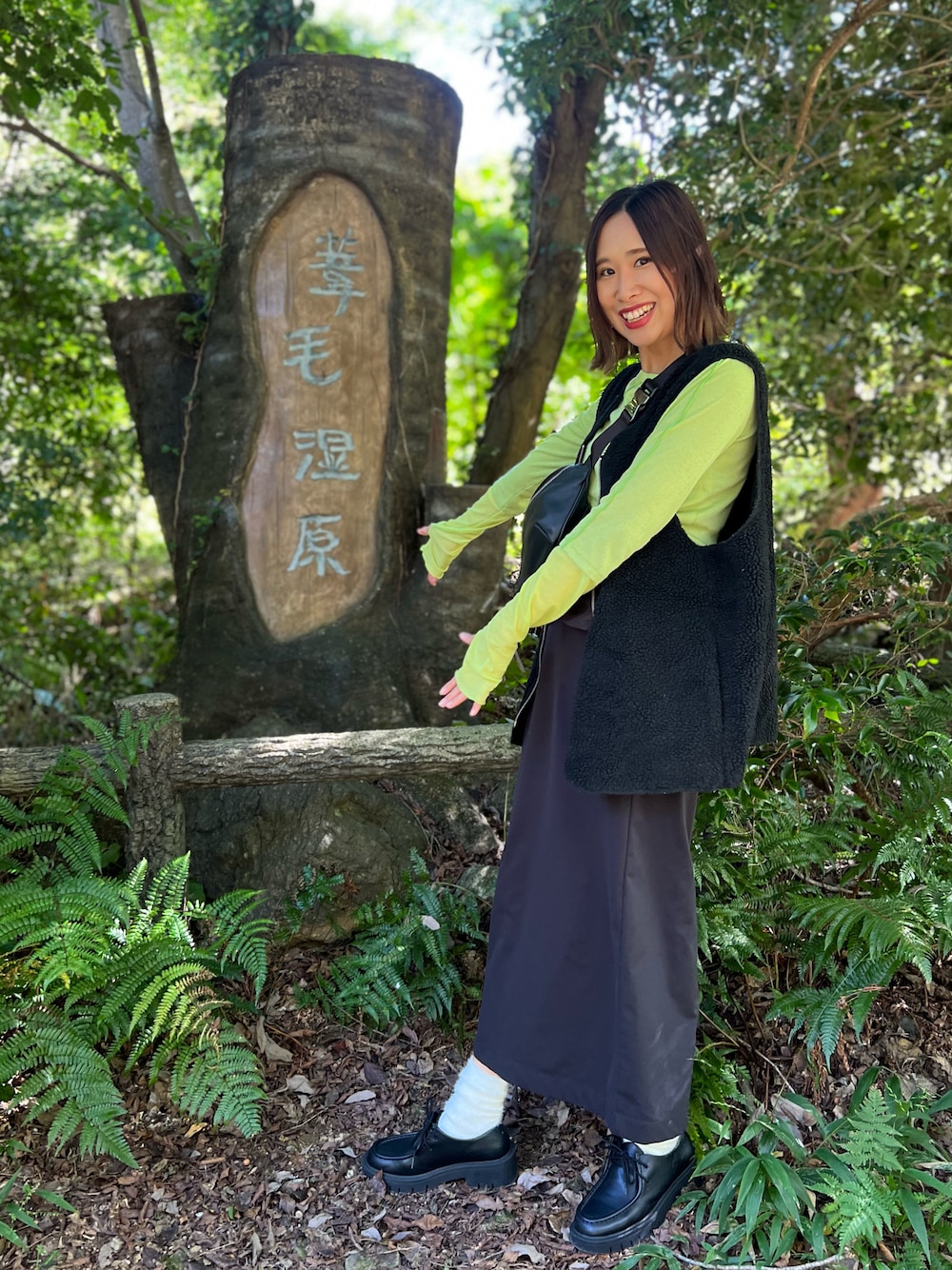 見てくださりありがとうございます♡ lowrys farmのマルチベルトともけもけのソックスを合わせたかったコーデ🖤🤍 目的地 湿原だったのでコーデに緑を入れました! (湿原て何?!って思っていたけどこれなのね!と思いました🌱😆)