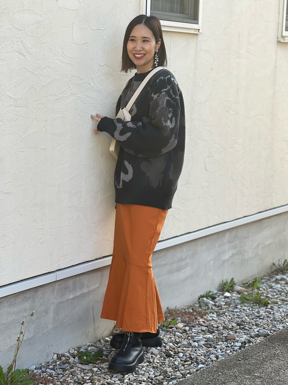 あみぃのニット/セーター「【a】モヘアライク ダブルジャガード オーバーサイズ フラワーグラデーションニット/アブストラクトニット」を使ったコーディネート