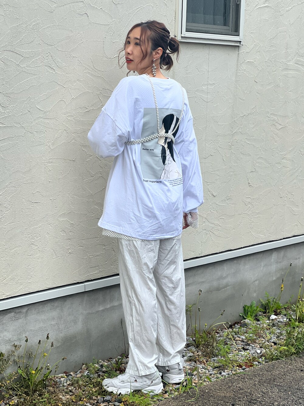 あみぃのTシャツ/カットソー「イラストバックプリント / ワンポイント刺繍 ビッグシルエットロンT カットソー ユニセックス【ILL’S】」を使ったコーディネート