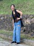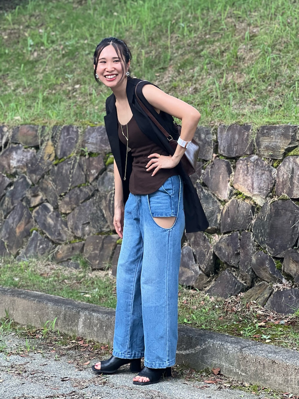 あみぃのデニムパンツ「サイドカットアウトデニム/レイヤードパンツ【SMLサイズ展開】」を使ったコーディネート